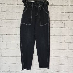 Something Navy Paperbag Waistbag Straight Leg High Rise Denim Jeans Black Size 6