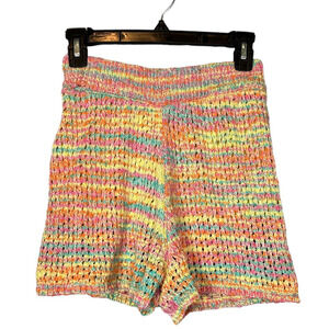 Something Navy Pastel Rainbow Sweater Shorts Rainbow SMALL Crochet Italian $115