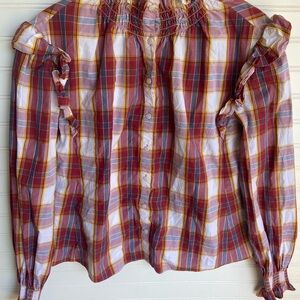 Something Navy Plaid Ruffled Top