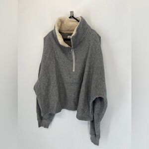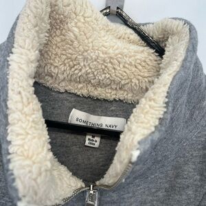 Something Navy Quarter Zip Sherpa Collar Sweatshirt In Heather Grey