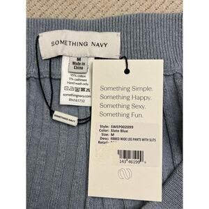 Something Navy Ribbed wide leg pants, cashmere blend, slate blue,size medium