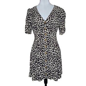 Something Navy S Leopard Print Mini Dress Short Puff Sleeve Button Animal Swing
