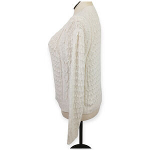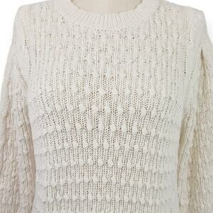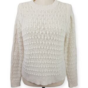 Something Navy SZ XL Cream Cotton Linen Blend Bobble & Cable Knit Chunky Sweater