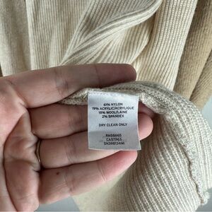 Something Navy Tan Beige Blocked Long Line Open Front Wool Blend Cardigan Small