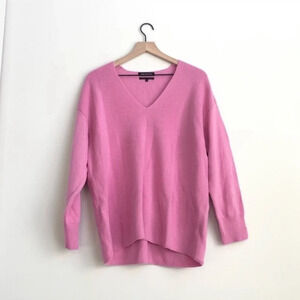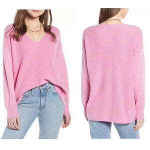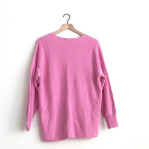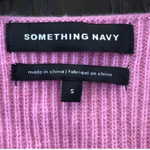 Something Navy V-Neck Slouchy waffle Knit pullover Sweater WOOL pink