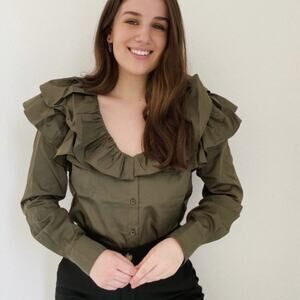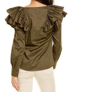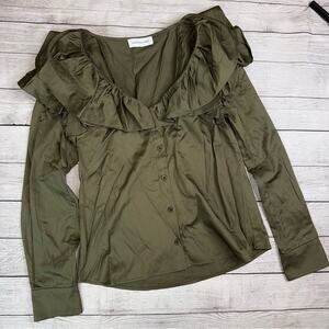 Something Navy Women's Bailey Olive Green Ruffle Long Sleeve Top Size XS