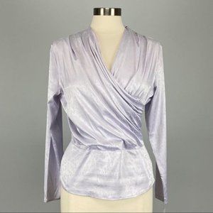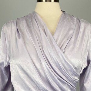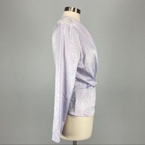 Something Navy Womens Lavender Long Sleeve Blouse Front Wrap Jacquard size Small