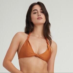 Something Navy Women's Orange Rust Twist Two Toned Bikini Top Size XS