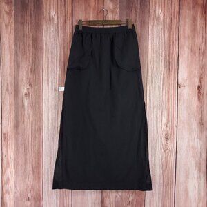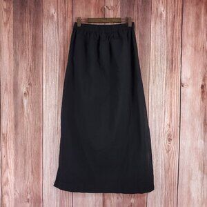 Something Navy Womens Size Large Linen Blend Maxi Skirt Double Side Slits Black
