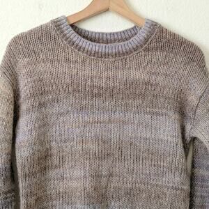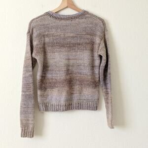 Something Navy Womens Soft Open Knit Crop Sweater Purple Brown Pullover XS $95