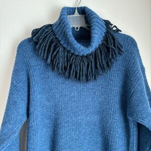 Something Navy Women’s fringe turtleneck wool blend sweater dress size XS NWT!