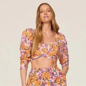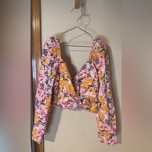 Beautiful floral blouse crop top size L could also fit a M. Puffed sleeves. Cotton.