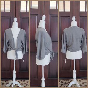 Something Navy Tie Front Wrap Sweater. Stay in for the night in this soft cotton wrap styled with drapey drop-shoulder sleeves and an easy front tie. Size XS. New with tags.