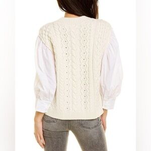 Oversized fit. Cableknit sweater vest. Attached white puffy sleeves. Excellent condition