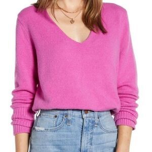 Something Navy Wool V-Neck Long Sleeve Loose Fit Sweater Top Pink Small