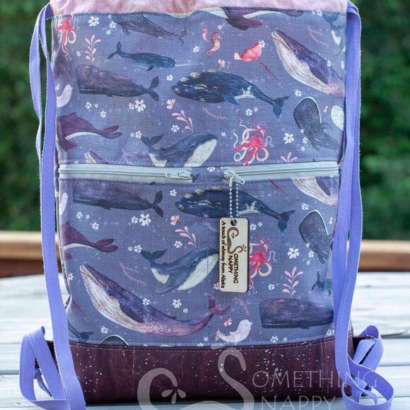 Something Snappy Whale Song (in lavender) Drawstring Backpack