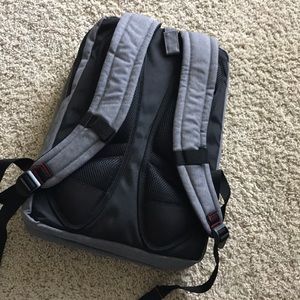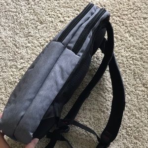 Something Strong Backpack. 3 pockets. Metal handle at top of Bag. Adjustable straps. Dimensions are 12” x 16” x 5”. Brand new! Smoke and pet free home.