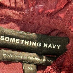 Something Navy Blouse Pleated Peplum Button Blouse Sz XS