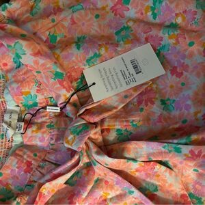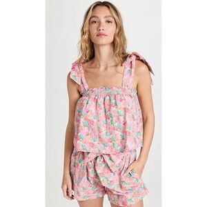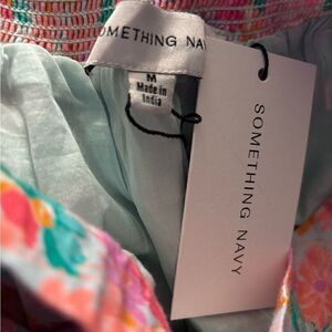 Something Navy Cotton / Linen Floral Tie Waist Shorts Size M / NWT