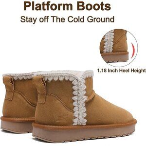 ✨ Somiliss Snow Boots Women Brown Suede Winter Non-Slip Outsole Design Fur Boots