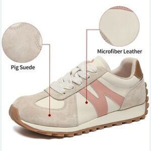 Somiliss Wide Toe Box Shoes Women Microfiber Leather Suede Patchwork Non-Slip Casual Walking Shoes Sneakers. Brand Size 250=8.5 US. Cream, pink and gray.