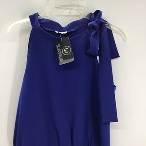 Somnium Women’s Halter Style Dress Bow Sleeveless Midi Cobalt Blue NWT Size M
