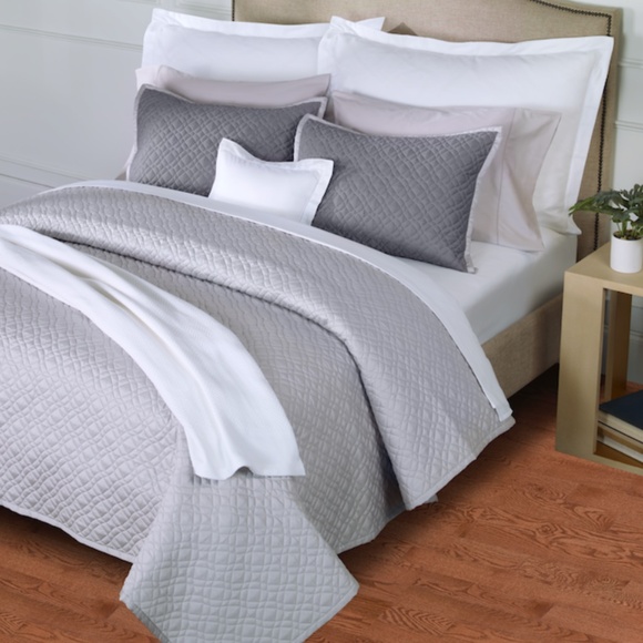 Features a contemporary box quilted pattern and a bias edge on all four sides of the coverlet and shams.