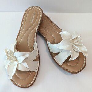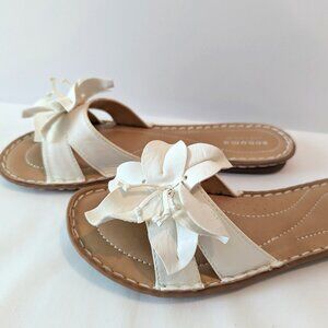 Somona "Ursula" White Flat Slip-on Sandals with Flower Detail Size 7.5
