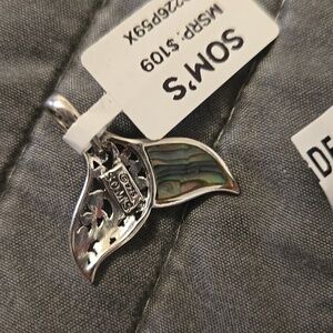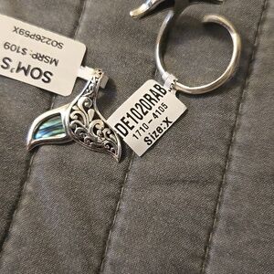 matching ring and pendant set features iridescent black-blue abalone inlays framed in polished silver. The whale tail design offers coastal style and versatile wear. Lightweight and durable for everyday use. Includes both ring and pendant for coordinated looks. both new soms never worn.