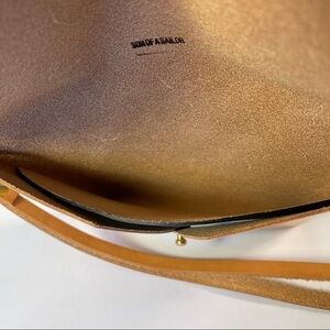Measures 9 inches wide at the top by 5 inches tall, the Emma features a solid brass button stud closure and solid brass swivel clip.
