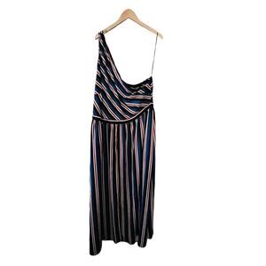 Soncy Multicolored Striped One Shoulder Maxi Dress Size 4X NWT