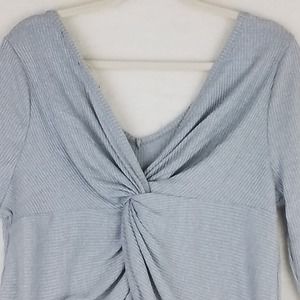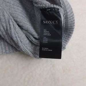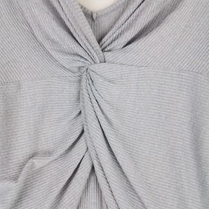 Soncy Ribbed Knit Sweater Sz 10 Gray Oversized Stretchy V Neck Twist Open Back