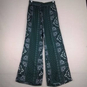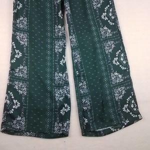 These pants feel silky and luxurious. They feature a wide leg design, silky texture, wide elastic waistband, and drawstring for cinching. The rich green is accentuated with white floral and paisley print. Soncy is best known for trendy and affordable plus sized fashions. These pants are new with tags.