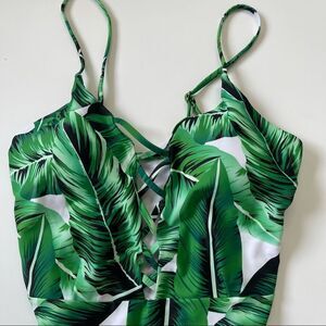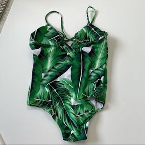 Sondiborn palm leaves lace up one piece swimsuit L‎