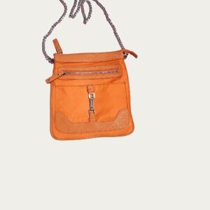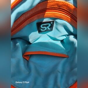 Vibrant orange with aqua interior SR2 crossbody has new replacement strap. Super clean, one tiny spot, please see last picture.