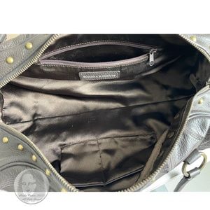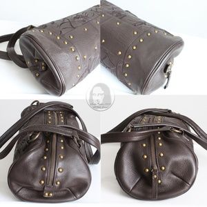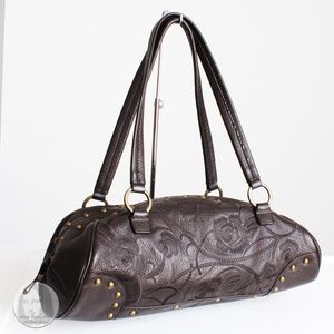 Sondra Roberts Bag Satchel Brown Leather Floral Embossed Studs