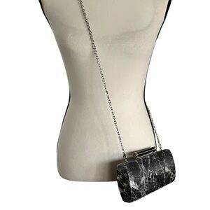 Sondra Robert’s New York Marbelized Crossbody/Clutch. Chain handle unclips on both sides to become evening clutch. Great condition.7.5” by 4”.