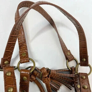 Sondra Roberts Jewel Studded Brown Canvas and vegan Leather Shoulder Bag ✨