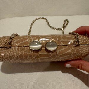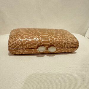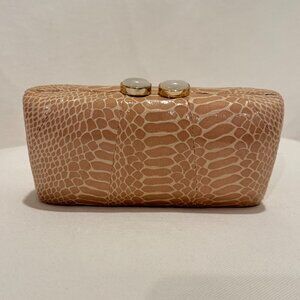 Sondra Roberts Nude Embossed Clutch with Pearl Closure