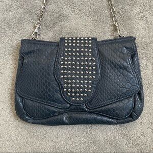 Sondra Roberts SR Squared Snake Embossed Studded Convertible Shoulder Bag Clutch