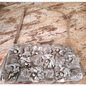 By Sondra Roberts - Beautiful Shimmering Gold Tan Floral Evening Bag. Can be used as clutch or has removable strap.