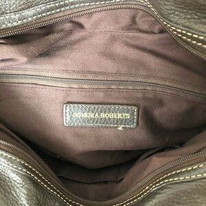 Beautiful leather bag with plenty of storage. One zipper compartment and two magnetic snap compartments with additional zip section and pockets in the middle section. Excellent condition.