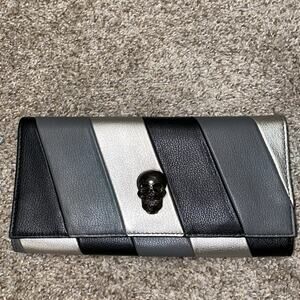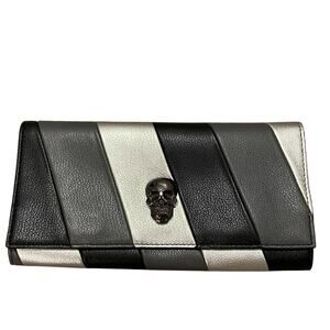 Sondra Robert’s Skull Clutch/Wallet Black Silver White Halloween Metallic