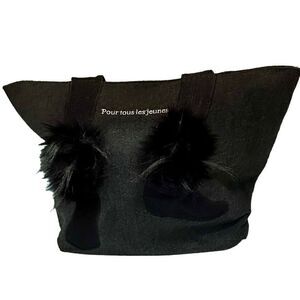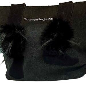 This large dark gray flannel tote shoulder bag is from Sondra Roberts and her squared collection. It is in excellent condition and features black wedge booties trimmed in a faux fur for a very unique look. It is 20” W 13” H with a shoulder drop of 10”