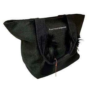 Sondra Roberts Square Large Dark Gray Tote with Black Booties Faux Fur Trim Wine