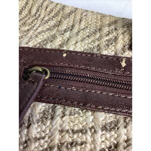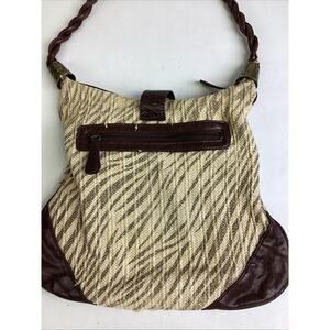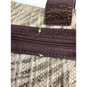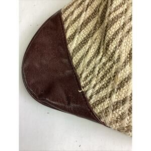 Sondra Robert’s Squared Handbag Tote Bag. In used condition. It has a few imperfections. On the front in the leather, it has 4 small spots where the leather is missing. On the dangly thing that can be on the front or back, it has 2 other small spots of missing leather. And on the back, there’s a little material that is sticking up. Although there’s no tag stating made of genuine leather, it has the feel and smell of leather but I will say it’s made partially of faux leather since I’m unsure. This bag measures 15x12.25”. The strap is 10”. The strap is also missing leather
