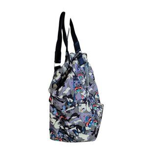 Sondra Roberts Squared Large Nylon Parachute Travel Bag Black and Gray Camo with Colorful Butterflies