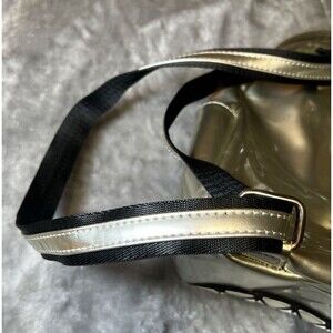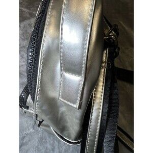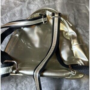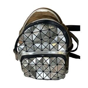 Description: Silver Metallic Geometric Patterned Mini Backpack