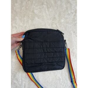 Sondra Roberts Squared Nylon Quilted Black Crossbody Purse Rainbow Strap