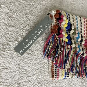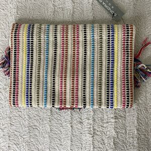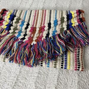 Sondra Roberts Squared Woven Multicolor Clutch Fringe Boho Festival Colorful